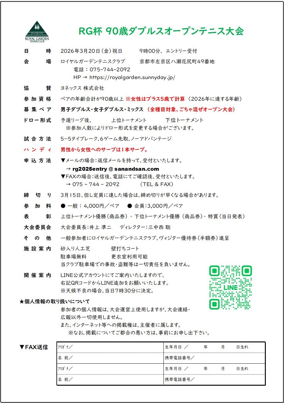 2026年3月20日(金・祝日)RG杯 90歳ごちゃ混ぜダブルスオープン大会 → ここをクリック